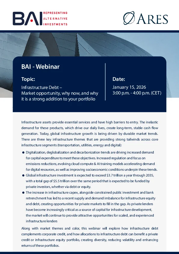 15 January 2026: Infrastructure Debt – Market opportunity, why now, and why it is a strong addition to your portfolio