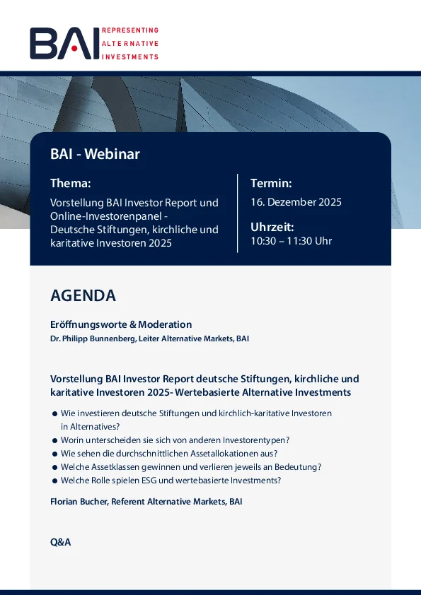 16 December 2025: Presentation of the BAI Investor Report and Online Investor Panel – German foundations, church and charitable investors 2025