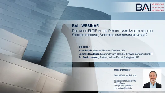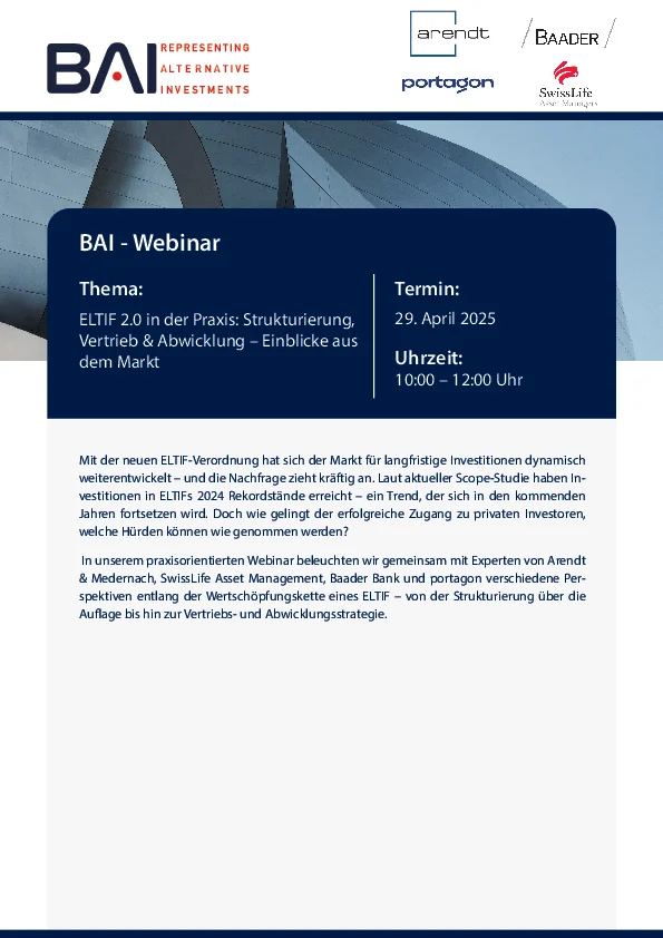 29 April 2025: ELTIF 2.0 in practice: Structuring, distribution & processing - insights from the market