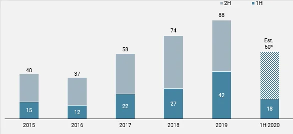 Wie erwartet, hat die Pandemie einen Rückgang der Sekundärmarkt Deal Aktivitäten bewirkt, insbesondere am größeren Ende des Marktes. Darüber hinaus waren große Sekundärmarkttransaktionen, die trotz der Krise zustande kamen, angesichts der hohen Bestände an Dry Powder unter den großen Teilnehmern hart umkämpft.