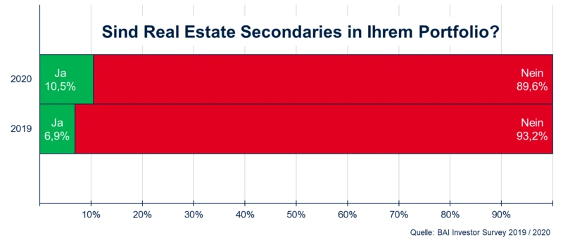 Mitunter deshalb entwickelten sich Alternative Investments mit stabilen, stetigen Renditen in den vergangenen Jahren zu einem unverzichtbaren Bestandteil der Kapitalanlage. Dabei sind für zahlreiche institutionelle Investoren Immobilieninvestments als Alternative zu Anleihen häufig der erste Schritt in der Reallokation traditioneller Investments, um mit alternativen Kapitalanlagen oder Strategien über langfristige Investitionen Stabilität und Inflationsschutz in das Portfolio zu integrieren. Beinahe neun von zehn im BAI Investor Survey 2020 befragte deutsche institutionelle Investoren haben bereits Kapital in Immobilieninvestments allokiert. Secondaries sind einer von vielen möglichen Zugangswegen, um Real Estate Investments in das institutionelle Portfolio aufzunehmen und den Bedarf nach schnellen Investmentlösungen abzudecken.