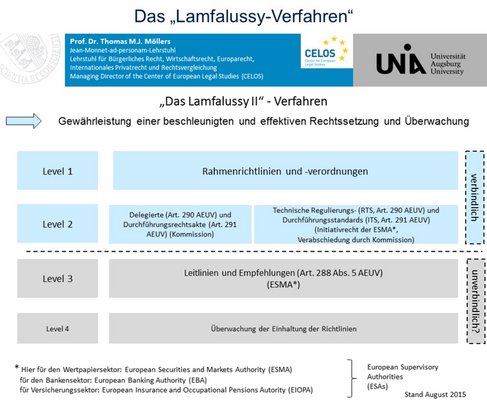 EU legislation in the area of financial and securities market legislation, including investment law, is carried out in the so-called Lamfalussy procedure, named after Alexandre Lamfalussy, and is intended to facilitate and accelerate legislation. The procedure has 4 stages: